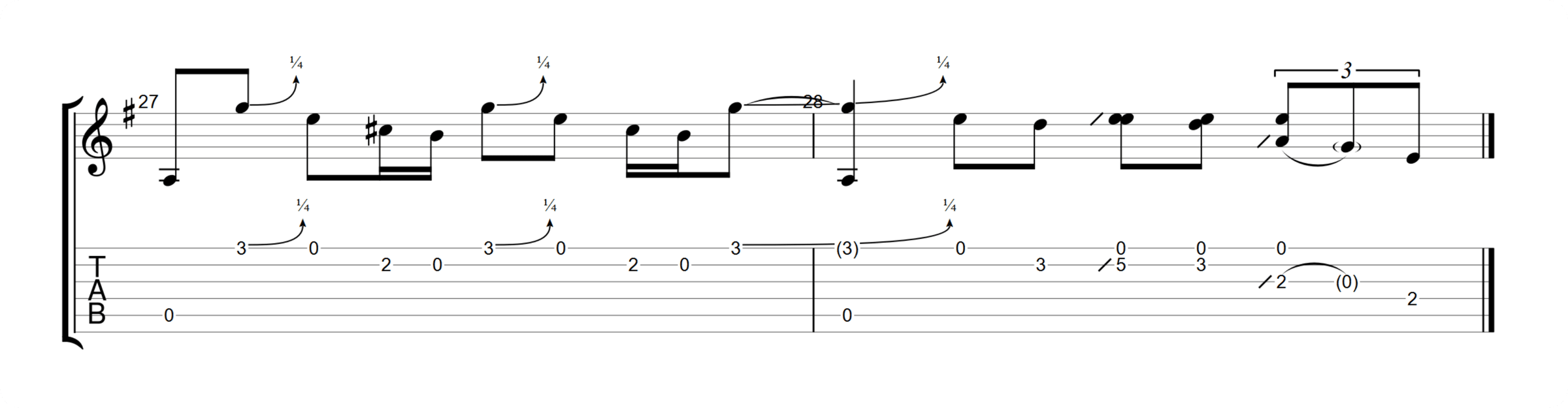 This example from before features hammer-ons heavily, especially in the third measure.
