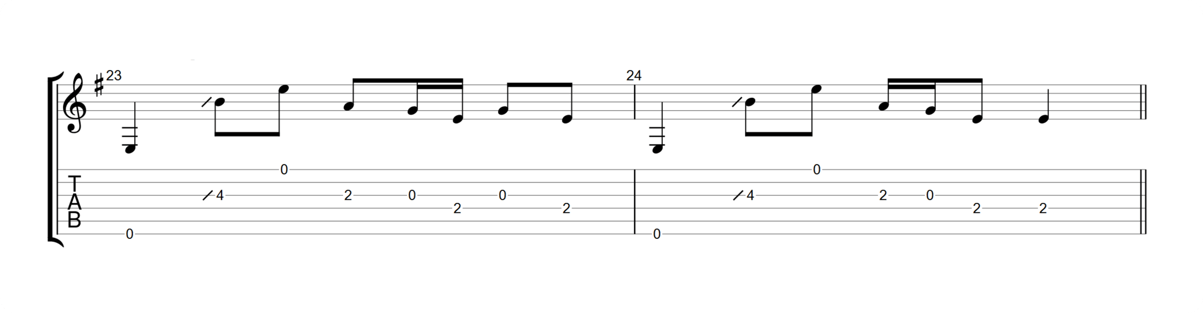 Sliding between two notes is expressive because it’s a smooth way to connect notes. The note changes at the frets, but this is smoothed over, especially with fast slides. Try this subtle spin on the slide to add a little emotion to a single note: