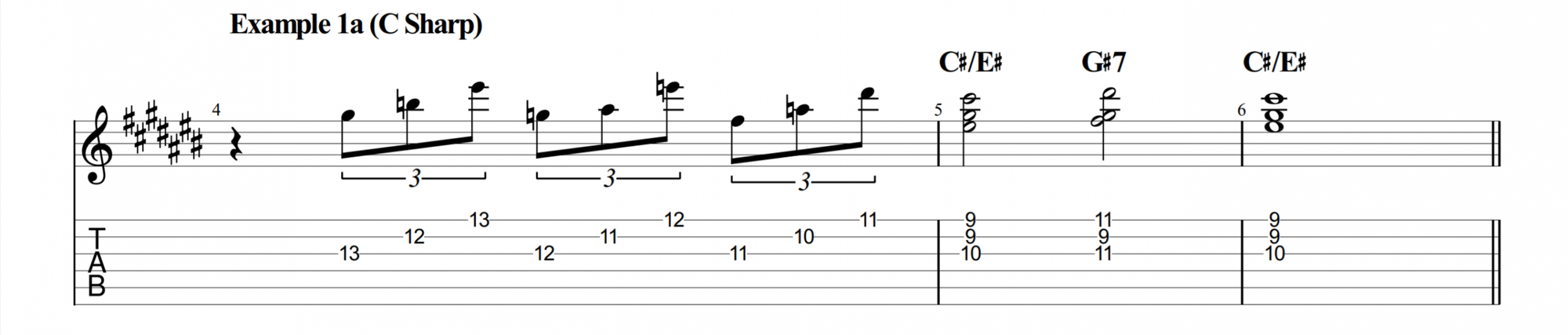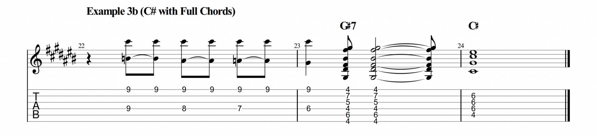 For our example, let’s move this into C#. While C# isn’t the most common key for blues, it makes for great practice. If you can change into this key, the rest will be a breeze!